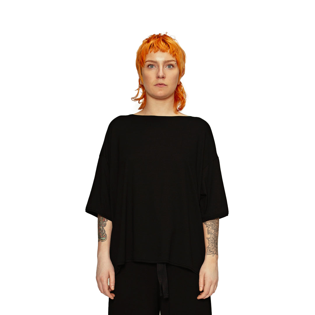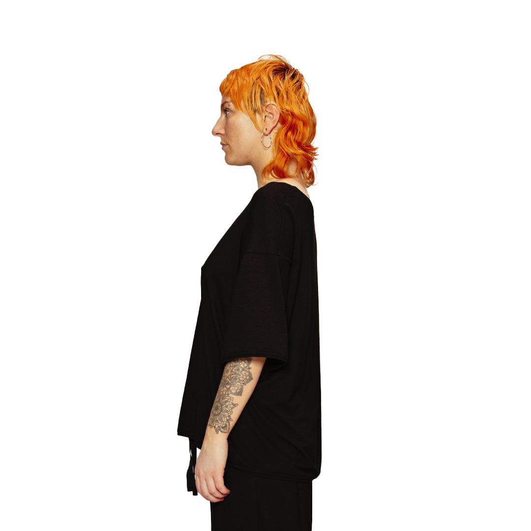 T-shirt handmade in Italy in black soft jersey. Loose/regular fit with large sleeves. Sharp finishing and precise tailoring.