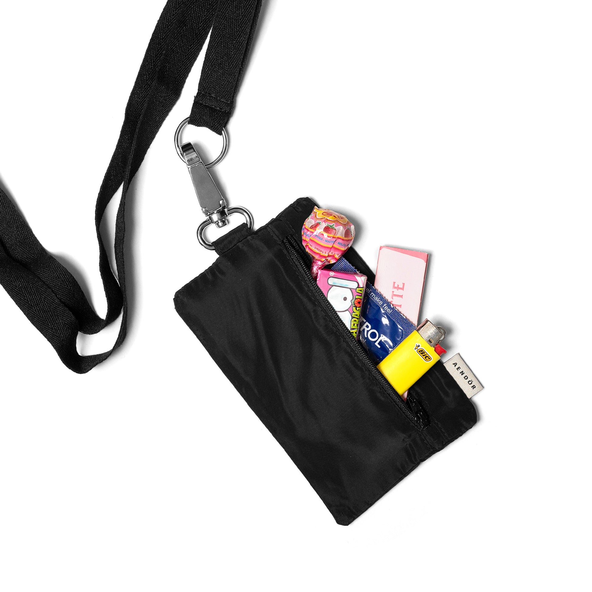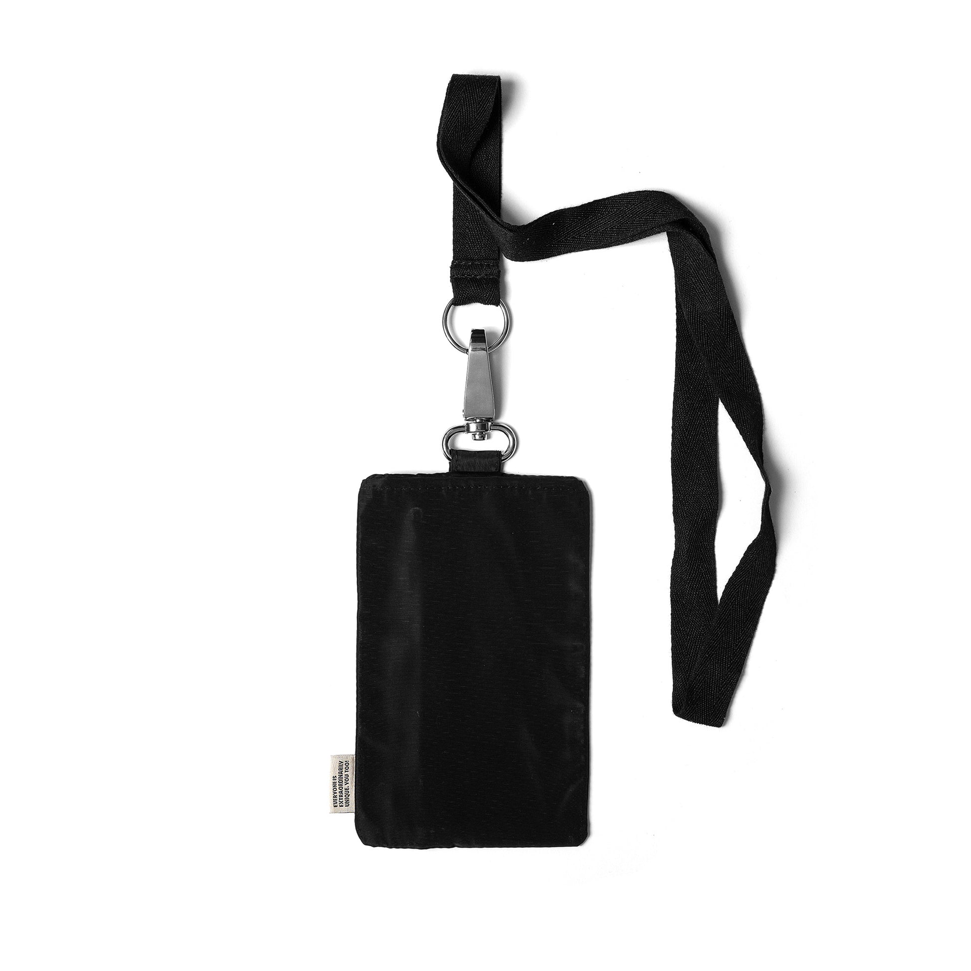 Mobile pocket handmade in Italy in water-repellent fabric. Keyring carabiner made in Italy integrated. Front pocket with zip for your essentials and back pocket for your phone. Iphone 15Pro fits perfectly.