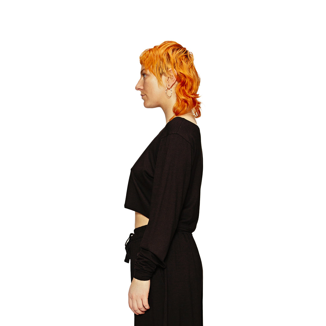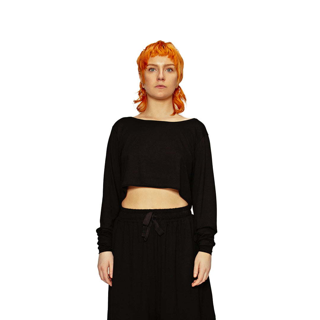 Top corto a maniche lunghe fatto a mano in Italia in morbido jersey di alta qualità. Vestibilità regolare/slim.