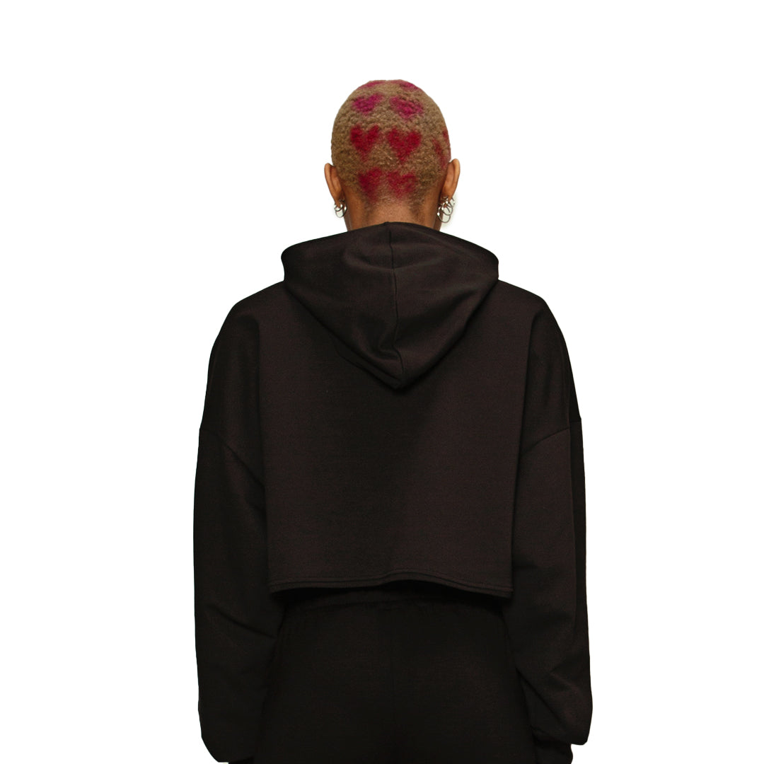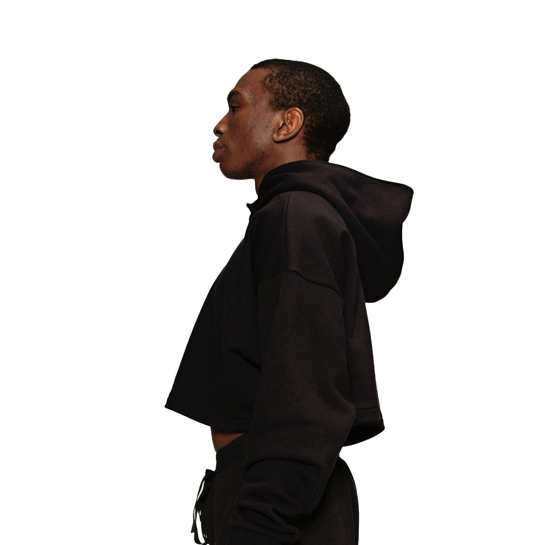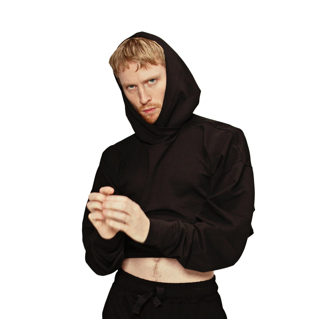 Il Crop-Top Hoodie è realizzato a mano in soft jersey nero. Ha le spalle leggermente scese per una vestibilità oversize rendendolo il capo perfetto da indossare tutti i giorni, ma allo stesso tempo non passare inosservati.
