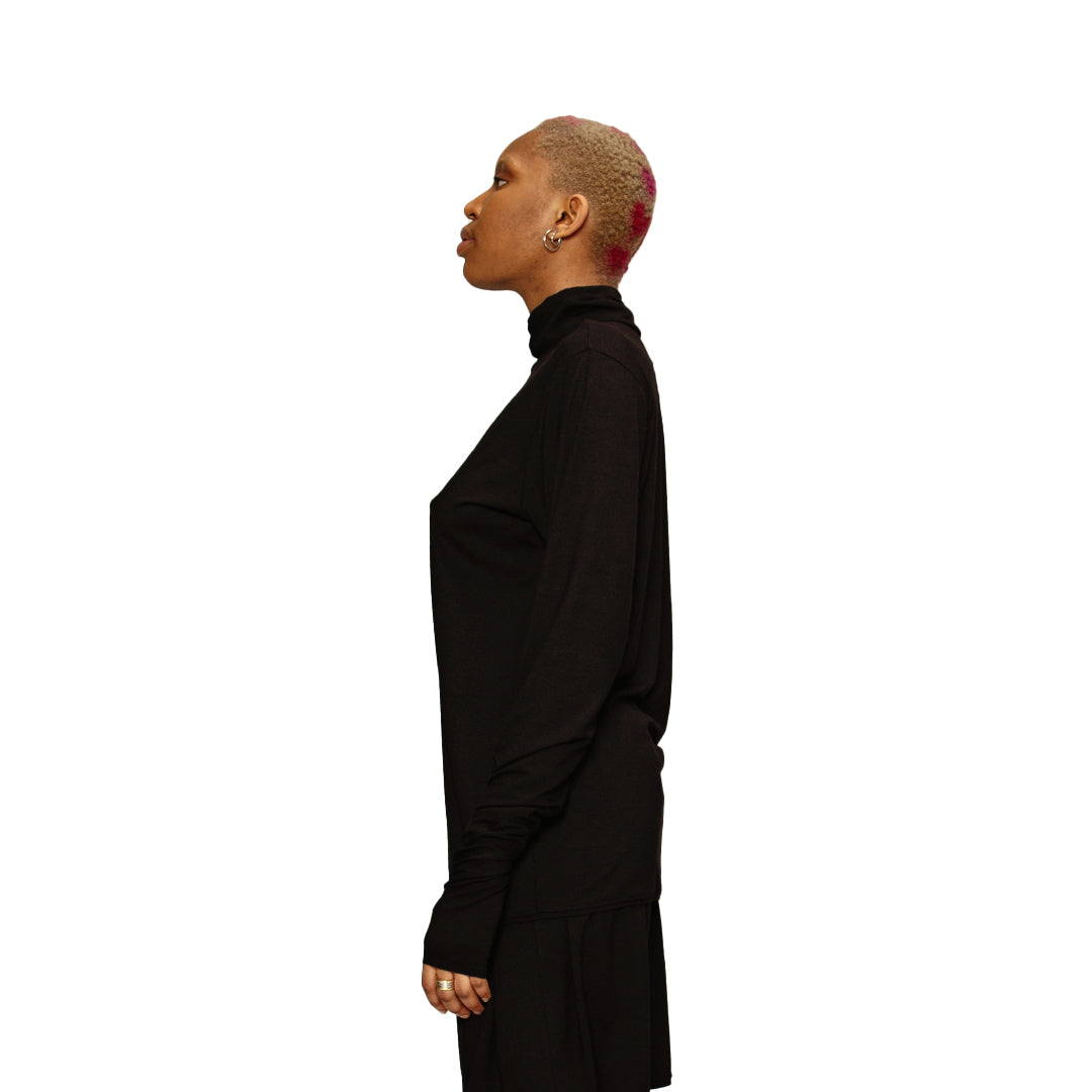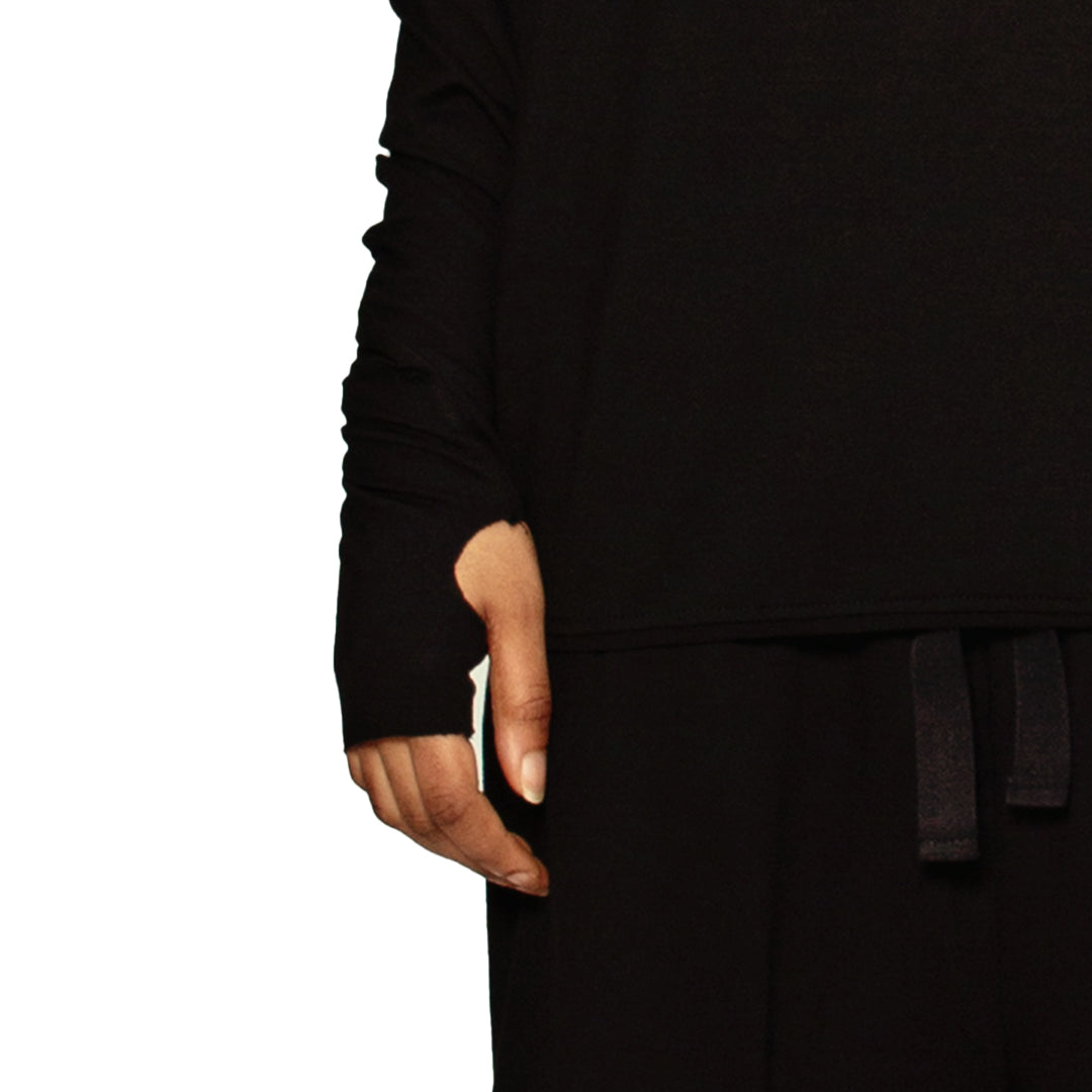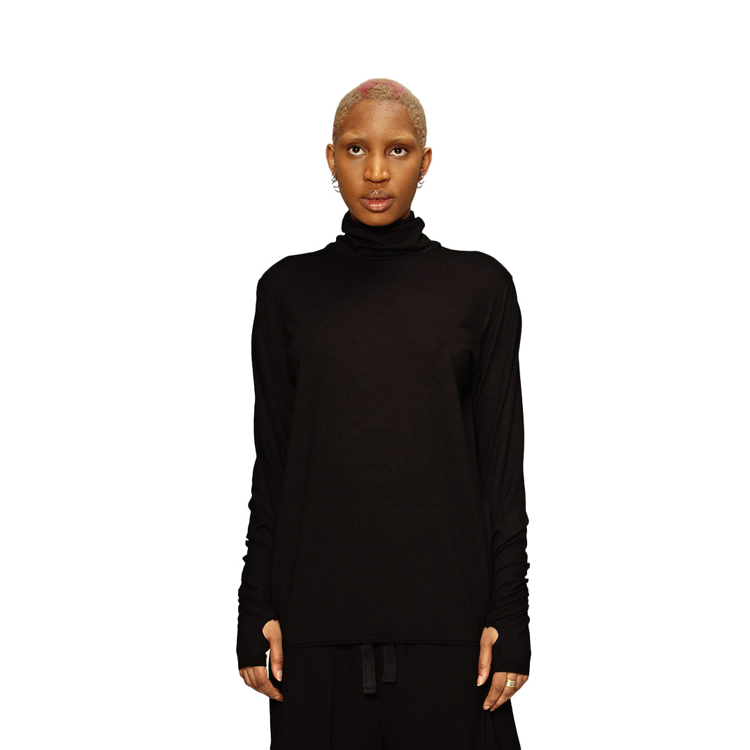 Dolcevita a lupetto fatto a mano in Italia in morbido jersey di alta qualità. Vestibilità regolare o ampia. Maniche lunghe e foro per il pollice. Finitura maniche a taglio vivo.
