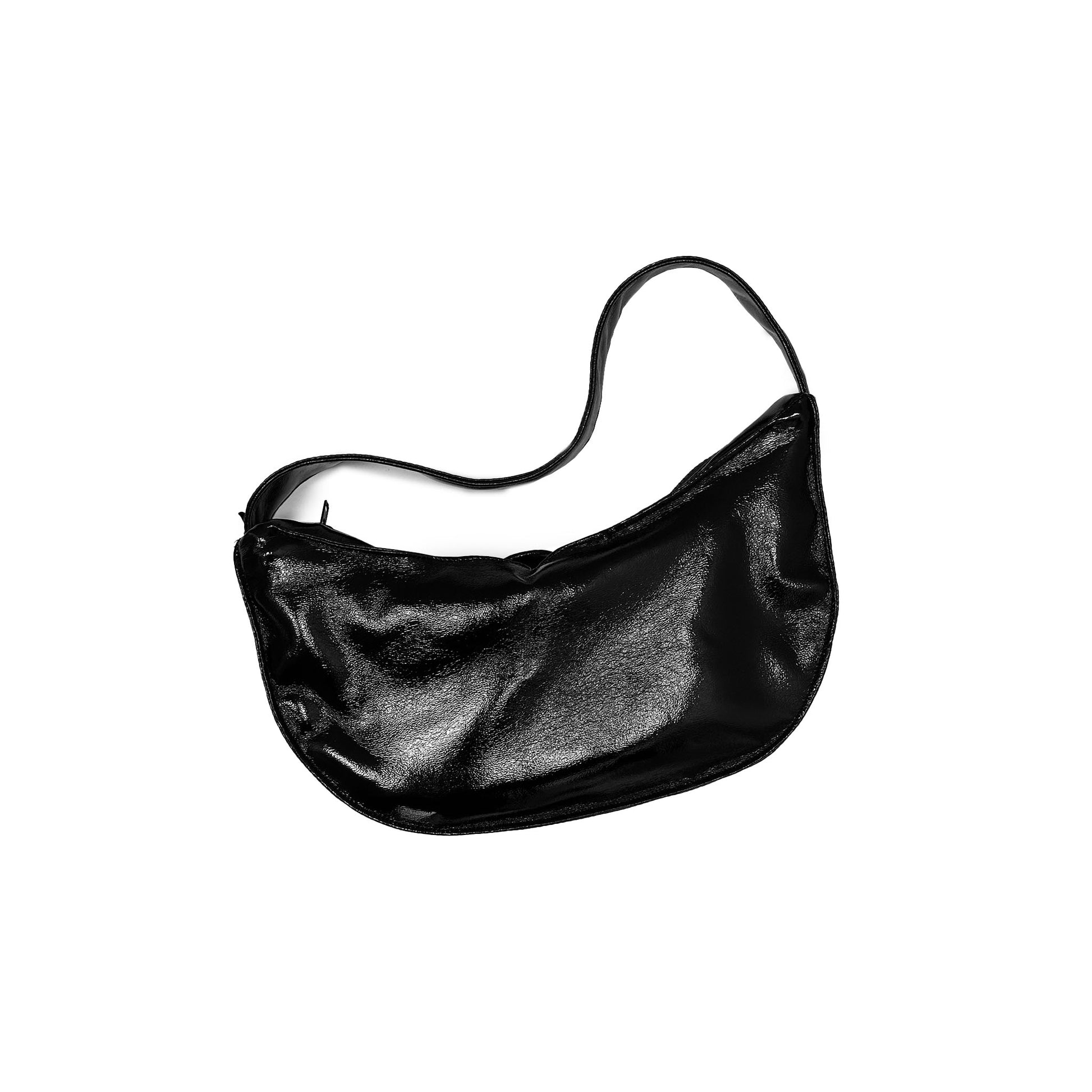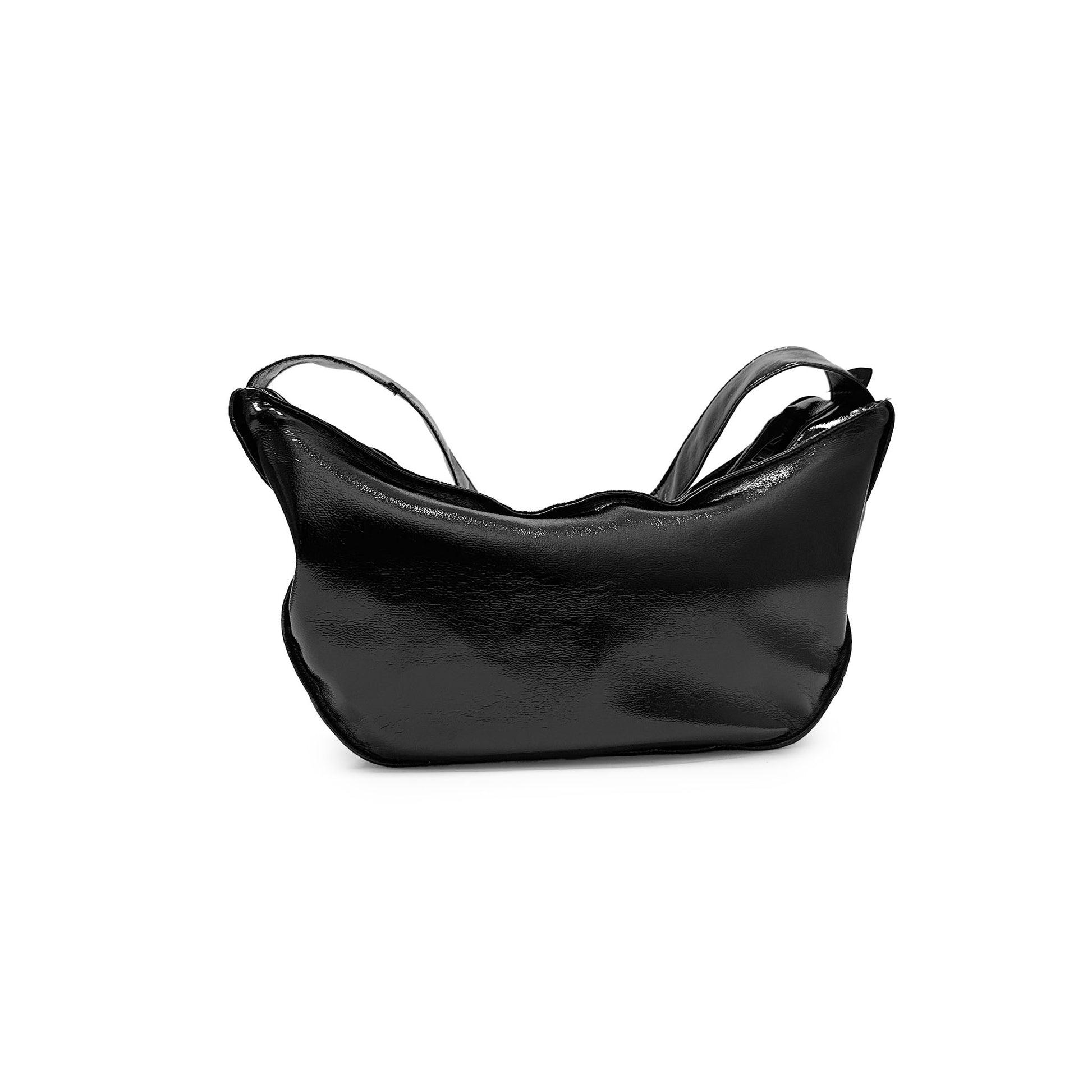 Glossy Bag a tracolla prodotta a mano in Italia in eco-pelle. Morbida al tatto e idrorepellente. Fodera in cotone, taschino interno e chiusura con zip.