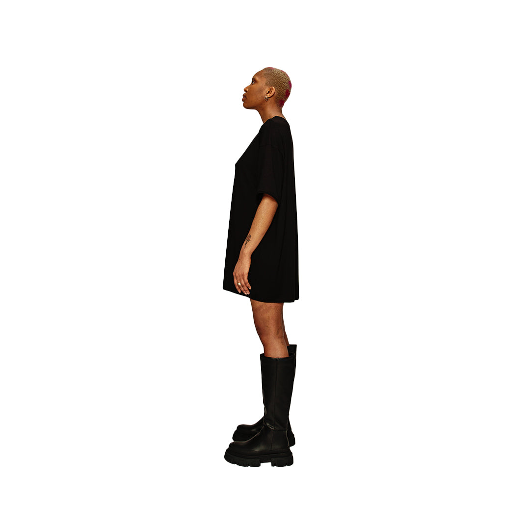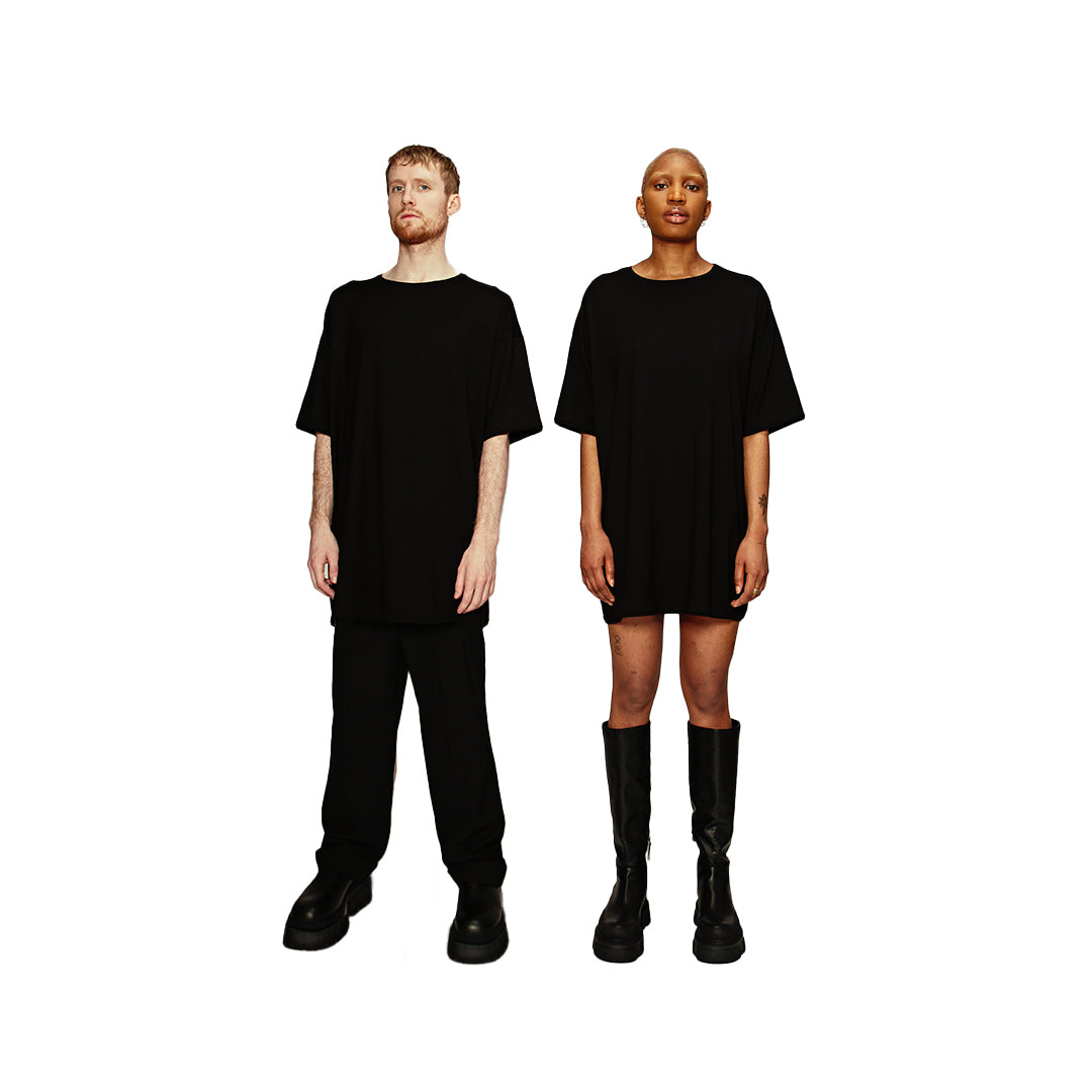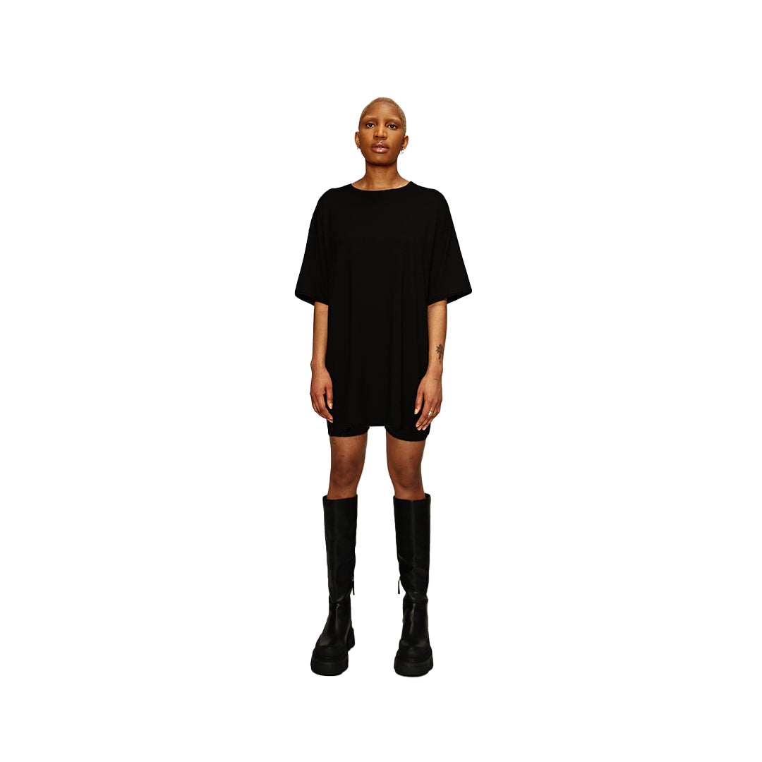 La t-shirt oversize è prodotta a mano in soft jersey nero. Disegnata per una vestibilità oversize. Cura nei dettagli e nelle rifiniture.