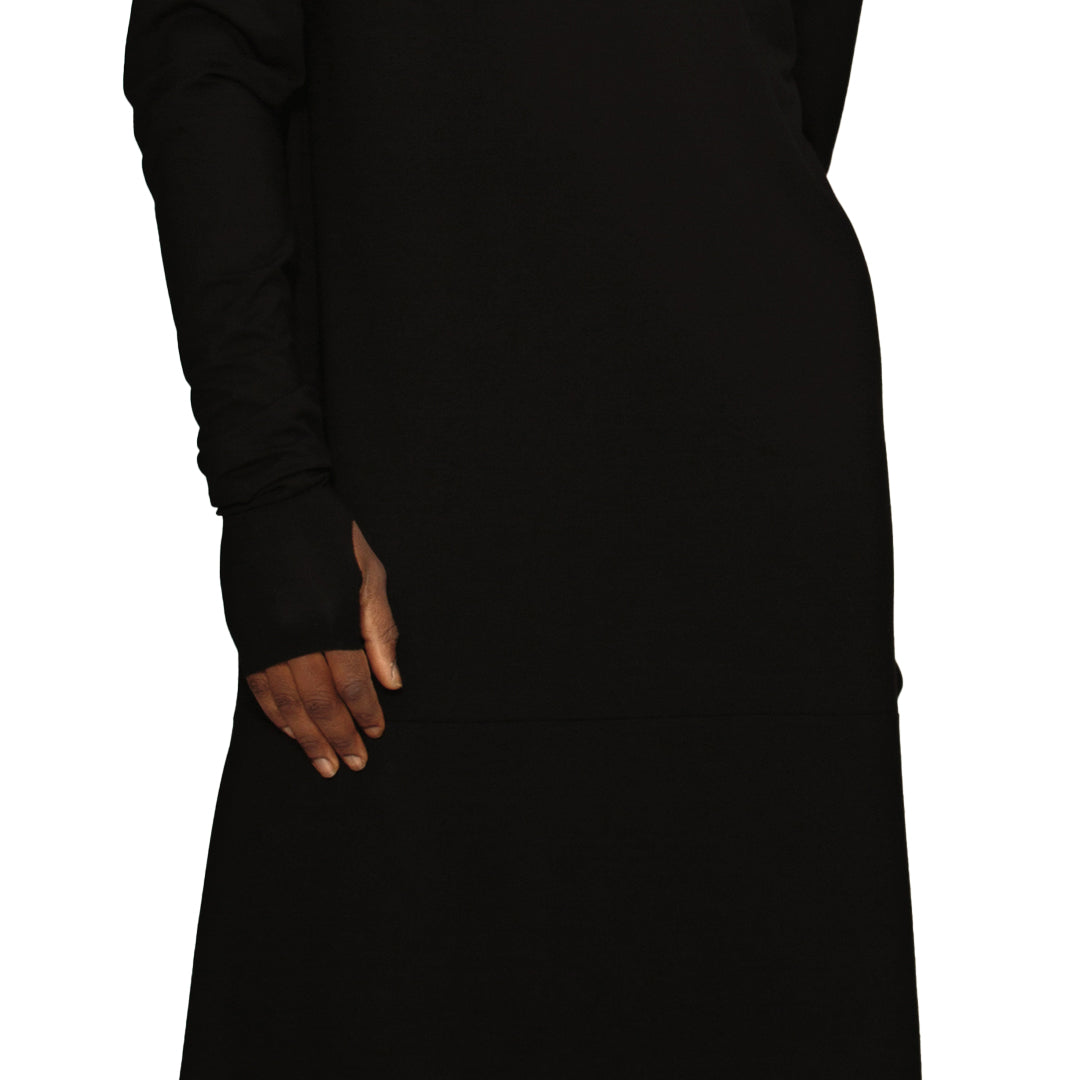 L'abito TT è realizzato in morbido jersey nero, con maniche lunghe, ed è realizzato a mano. Con una vestibilità comoda, è adatto a qualsiasi evento grazie al suo mix di eleganza e semplicità. Metti in moto il tuo stile! Con l'abito TT, puoi apparire e sentirti sicura di te in qualsiasi occasione. Il suo design artigianale e la vestibilità impeccabile ti permettono di affrontare il mondo con un look audace e senza tempo.