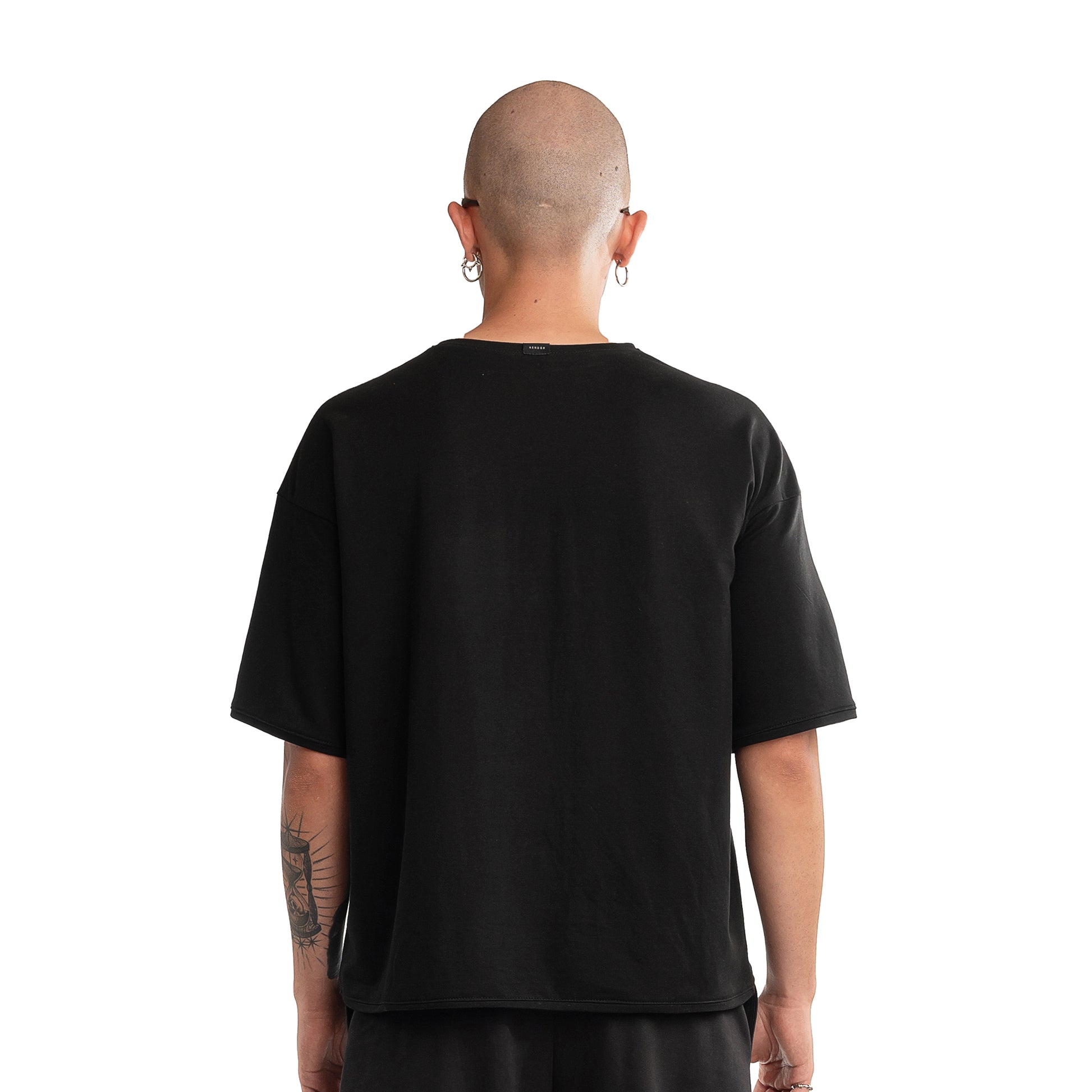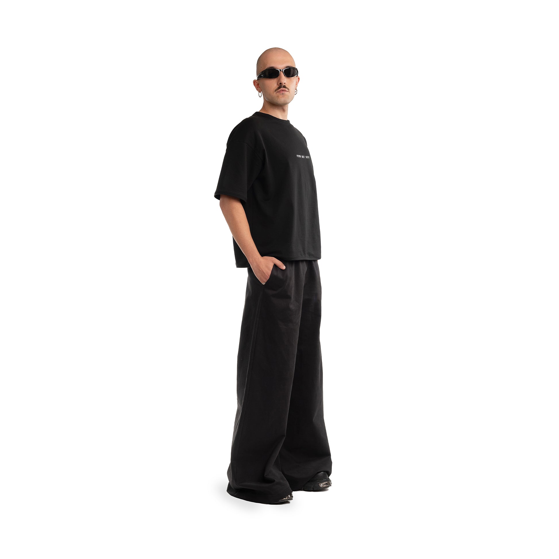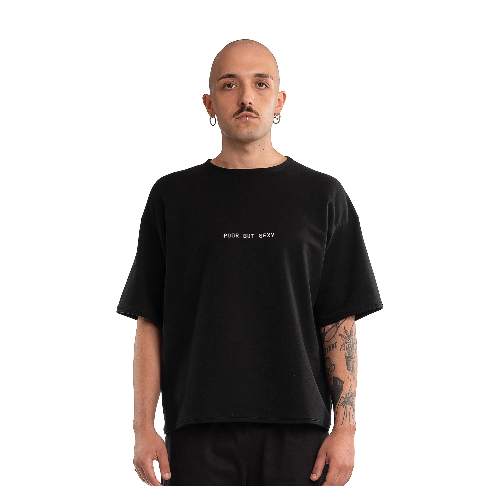 T-shirt in edizione speciale – 100% cotone nero, disegnata, tagliata e cucita da noi, con ricamo con la scritta POOR BUT SEXY, 100% made in Italy.